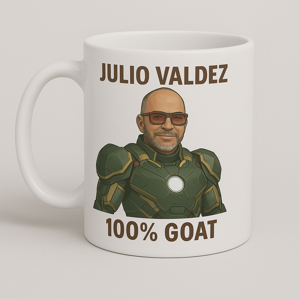 Julio Valdez “100% GOAT” Mug – VIP Service in a Cup